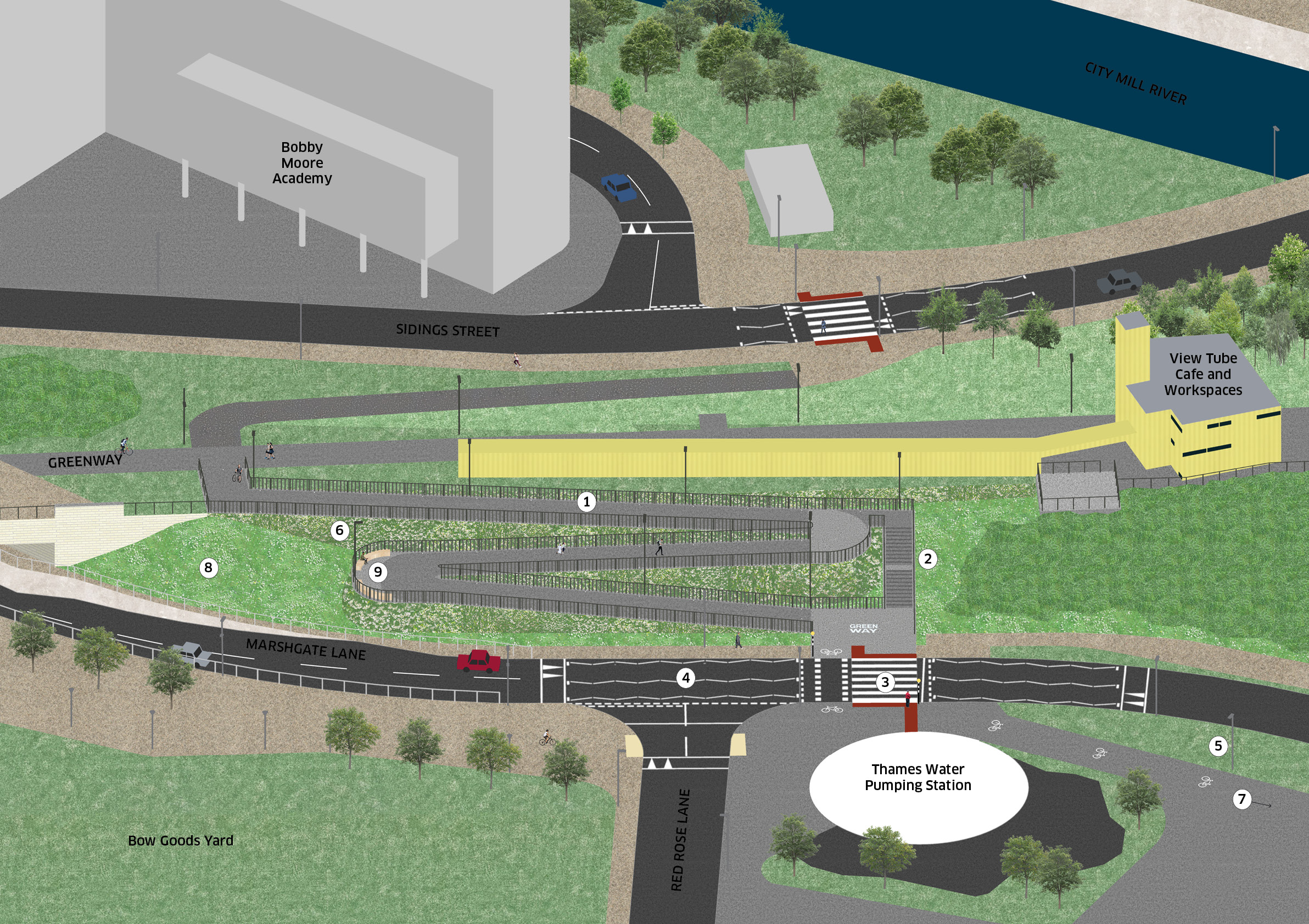 Latest image of the proposals for the upgraded Greenway Ramp and Marshgate Lane crossing released!